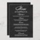 These chalkboard themed menu cards are whimsical and romantic! Menus feature calligraphy, modern typography, floral scroll work over a chalkboard or blackboard background in a black and white color scheme.