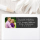 Showcase a treasured wedding photo against a vintage chalkboard backdrop on these elegant return address labels. The couple's names and address appear in refined white script alongside the photo for a polished, romantic finishing touch. Upload your photo and personalize all text.
