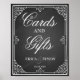 Add a touch of elegance to your wedding with this beautiful chalkboard-style sign, featuring a delicate border and stylish calligraphy. The sign reads “Cards and Gifts” and includes space to personalise with the couple’s names and wedding date, making it a charming addition to any reception or gift table.