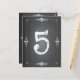 Whimsical table numbers in the popular chalkboard style. A charming number in a hand-written style font is surrounded by swirly curling scrolls in a chalk effect.