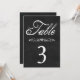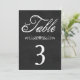 These chalkboard wedding themed table numbers are whimsical and romantic! Cards feature calligraphy, modern typography, floral scroll work over a chalkboard or blackboard background in a black and white color scheme.
