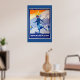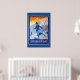 Beautiful vintage travel poster advertising the resort of Chamonix in Switzerland. It shows young people skating with Mont Blanc in the background and is toned in beautiful shades of blue.