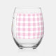 Champagne and Cupcakes Pink Gingham Stemless Wine Glass
