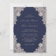 Yes, you can print on the back of your invitation for free! Most designs already have a corresponding design on the back that can be personalized using the Design Tool and going to Layers. This is a great way to communicate more information or further personalize your Champagne And Navy Blue Lace Wedding Invitation. The option is really up to you.