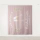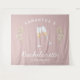 personalised retro bachelorette party tapestry in blush pink and white with champagne glasses is perfect as a bachelorette party photo backdrop. Celebrate your bridal shower in style with the perfect champagne party theme in blush pink and white, the perfect theme for the nostalgic vintage 70s bride and her bridesmaids.