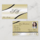 Champagne Beige Curved Decor Lines Monogram Photo Business Card