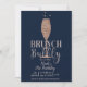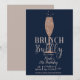Champagne Brunch Bubbly Rose Gold Navy Birthday Invitation