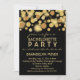 This modern stylish design features a gold bokeh dot design with a black background. While this particular invite is made for bachelorette parties, it's also great for Engagement, Birthday and New Year's Eve parties. Personalize this invitation with the details of your party. The back also has plenty of room for information.