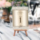 These trendy glamorous champagne glitter table number cards are perfect for your elegant wedding table decor. The faux metallic background is framed on top and bottom with glitter damask, and the monogram at the top is in elegant script typography.