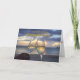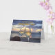 Beautiful Custom Wedding Congratulations Card Featuring Champagne Flutes Overlooking A Beach At Sunset.