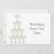Wedding save the date card champagne glasses design. Customise this champagne coloured wedding save the date with your wedding details then have it printed and sent to you or instantly download it. Should you require any help with customising then please contact us through the link on this page. Champagne glasses design champagne coloured personalised wedding save the date invitation that you can have printed or instantly downloaded