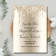 An elegant and trendy Champagne colored dripping glitter save the date card. Personalize all sections of the card. See our matching products in the Champagne Dripping Glitter Collection.