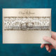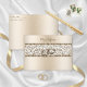 This elegant champagne metallic envelope design matches the glamorous champagne damask wedding invitations. The glitter damask across the flap and the closure is tied together with champagne wedding rings. The flap has the monogram of the bride and groom in elegant script font.