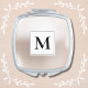 Elegant Monogram in Champagne Square Compact Mirror. Bridesmaids custom gift.