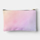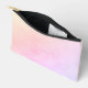 This cosmetics accessory bag features a champagne peach to pink purple ombre watercolor wash background with a customizable name in a pretty simple clean font.