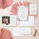 Inside format is that of a traditional, Catholic wedding Mass with room for up to seven bridesmaids and groomsmen names. Inside background is white. Back cover displays names of flower girl and ring bearer, message of gratitude and optional memorial message. The photo you supply is featured at bottom. All text is customizable. Designed to coordinate with the "Champagne Pink Lace Catholic Wedding Suite."