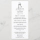 Time to get the party started! Chic black and white wedding menu features your starter courses, entrees and desserts in elegant lettering, accented with a hand drawn style illustration two entwined champagne flutes joined by an effervescent heart.