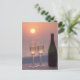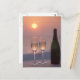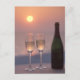 Colored Photo Art Postcard champagne bottle and two glassware at sunset Customize by adding text and inside verse