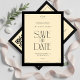 Embrace vintage charm with this Art Nouveau inspired save the date. The design showcases an initial monogram, 'G M', beautifully integrated with flowing lines and a creamy, soft background. The striking black border and elegant font for the names and wedding details evoke a sense of classic romance. This piece is designed to capture attention and convey the heartfelt nature of your union.