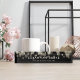 Elegant desk nameplate in crisp black features luminous bokeh lights in shades of white and champagne, cascading from the top. Personalize with your name and title or business name in modern white lettering.