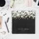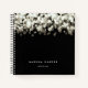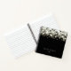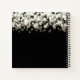 Chic black notebook features a top border of luminous bokeh lights in shades of white and champagne. Personalize with two lines of custom text along the bottom in modern white lettering.