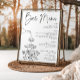 Add a touch of timeless elegance to your celebration with this black and white champagne tower bar menu sign, featuring a stylish illustration of cascading champagne flowing through a stacked flute tower. Designed in a classic minimalist aesthetic, this 8x10 printable sign is perfect for weddings, bridal showers, engagement parties, and upscale events. Easily personalize with your drink menu and frame for a polished, professional bar display.