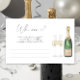 Watercolor elegant champagne bottle with two glass of champagne and text "Pop the champagne. She is changing her name.".