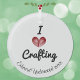 Edit this elegant glass ornament and replace "Crafting" with another word that will fit. The red heart is a paper quilled print. A thoughtful keepsake to be displayed year-round. Easily change text using the Template provided. Ideal gift for a special person who enjoys hobbies and crafts! Diameter of 3", is .16" thick and weighs 2.4 oz; the back is frosted. See "About This Product" at side for more information.
