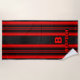Change Initial Add Name Red on Black Stripes Beach Towel