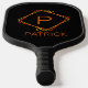 Change Initial, Add Name Red Yellow Squares Black Pickleball Paddle