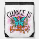 Change is Beautiful Butterfly Inspirational Quote Drawstring Bag
