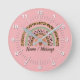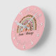 Change Name Text Leopard Spots Print Rainbow Pink Round Clock