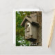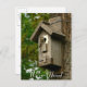 Cute photo of a bird standing outside it's bird house. We've moved in white text on the bottom of the post card. Customize all the text front and back to suit your needs.