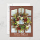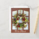 Pretty photo of a of a decorative wreath hanging on a door. We've moved in white text on the bottom of the post card. Customize all the text front and back to suit your needs.