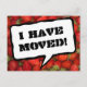 Change of address postcards with strawberry image. Custom move text; We have moved! Add your new address on the back. Modern cute cards for new home or business location.