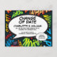 Personalise with your names and details to announce the change of date of your special event. Comic book pop art themed modern, fun retro design, perfect for weddings, bridal showers, baby showers, baptisms, engagement parties, anniversary celebrations, graduations, birthday party and other special events throughout the year! A cool, trendy and fun design that puts the wham zap pow into your day. Designed by Thisisnotme©