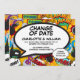 Personalise with your names and details to announce the change of date of your special event. Comic book pop art themed modern, fun retro design, perfect for weddings, bridal showers, baby showers, baptisms, engagement parties, anniversary celebrations, graduations, birthday party and other special events throughout the year! A cool, trendy and fun design that puts the wham zap pow into your day. Designed by Thisisnotme©