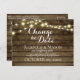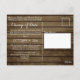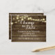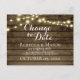 Change the date rustic barn wedding theme postcard with dark wood and string lights. Edit text as preferred.