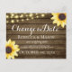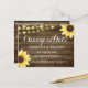 Change the date rustic barn wedding theme postcard with pretty sunflowers barn wood and string lights. Edit text as preferred.