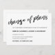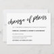 Elegant black and white handwritten postponing wedding date card featuring a calligraphic "Change of plans".