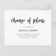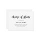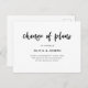 These modern and minimal wedding reschedule, cancellation, or postponement cards feature black, casual script that says "change of plans" on a white background. If you must change or cancel the date of your wedding or any other special event, this is a classy and simple way to do so.