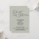 Plain white envelopes are included with paper invitations and will come to fit the invitation size you select. If you don’t need the envelopes, you may choose to not receive them by selecting the dropdown below "Envelopes" and choosing "None." If you’d like to have a design on your envelopes, you can browse all of these available envelopes to find the design that complements your Change Of Plans Elegant Sage New Wedding Date Invitation.