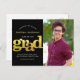 Make sure all your friends and relatives will still be able to celebrate your graduate’s milestone event, regardless of current global unforeseen circumstances. Send out this stunning, simple, modern, personalized photo “Change of Plans” postcard for an event to remember. Bold, graphic, faux gold foil typography overlays a black background. On the right hand side, add a photo of your choice. Personalize the custom text with your graduate’s name, class year and date information. Your custom message, a faux gold foil graduation cap icon and your return address adorn the back. Matching invites, thank you cards, cap toppers, napkins, plates and other graduation goodies are also available in this trendy and stylish collection. Make sure their special celebration will still be as festive as originally planned!