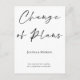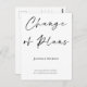 These custom modern, simple Change the Date cards are an elegant way to notify your guests of your change of date. The modern design features Change of Plans, your words, names and special date in script and bold typography. The back has a note to your family and friends. Click "personalize this template" to change all of the wording to your own. Please see our other matching designs in our store. If you need any help with customization or special requests, please email me at ybnormalone @gmail.com. Thanks for stopping by www.zazzle.com/Personal_Creations. ©Karen Hall for Personal_Creations at Zazzle.