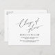 This is the modern minimalist clean script, design themed, in Black font, Wedding party invitation Rescheduled postcard (change of plans). It is the perfect and elegant way to make the reschedule announcement to your friends and family.
