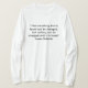 I love this shirt. I had written to the artist asking her if this picture was available on a shirt, and she wrote me back telling me where I could find the shirt. These shirts can be custom made to have a different saying. I loved this saying and went with it. The artist wrote me back later to tell me that she had seen my order go through. How's that for service? Pretty special. It's just as displayed. Perfect!