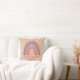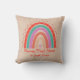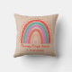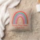Change Text Add Name Boho Rainbow Heart Aqua Brown Throw Pillow