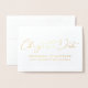 These elegant change the date cards feature real foil design with script font. Personalize the text on the front and the inside.