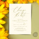 This is the Wedding party invitation Rescheduled, save our new date (postponed / postponement) card (Change the date), in the modern minimal simple clean romantic yellow gold design themed. It is the perfect way to make the event reschedule announcement to your friends and family.