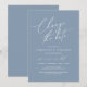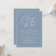This is the Wedding party invitation Rescheduled, save our new date (postponed / postponement) card (Change the date), in the modern minimal simple clean romantic dusty blue design themed. It is the perfect way to make the event reschedule announcement to your friends and family.